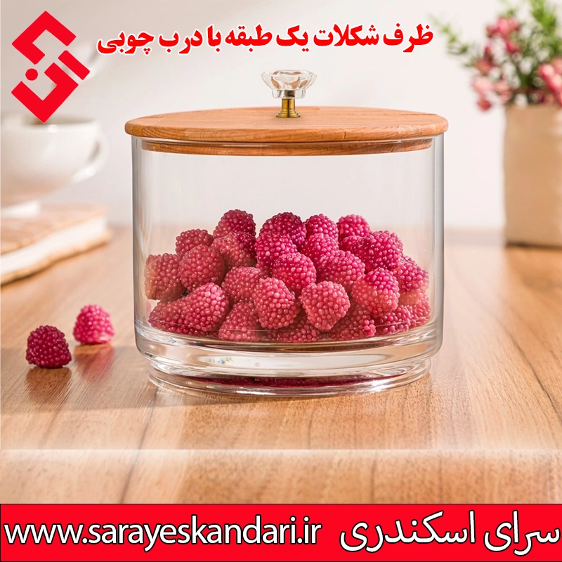 ظرف شکلات یک طبقه با درب چوبی لیمون کد 2178