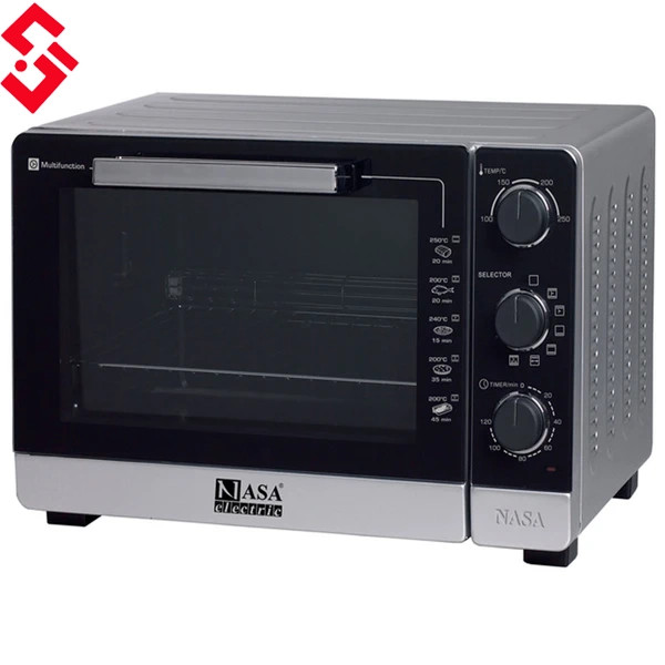 2100 وات توان مصرفی آون توستر ناسا الکتریک مدل NS-2040 می باشد، توستری کاربردی برای گریل، برشته کردن و پخت غذا های خوشمزه.ین آون توستر آشپزخانه بدنه ای از جنس آلومنیویم دارد و شیشه دوجداره آون توستر ناسا الکتریک مدل 2040 از جنس پیرکس است که آن را به نمونه ای مقاوم در برابر افزایش دما بدل کرده و امکان شکستگی و ترک برداشتنش را با اوج گرفتن دما به حداقل رسانده است. ظرفیت این محفظه در حد 40 لیتر است و شما می توانید انواع مواد غذایی از گوشت و ماهی گرفته تا پیتزا و شیرینی های مختلف را به کمک قفسه سیمی گریل کرده و لذیذترین غذا ها را تدارک ببینید. جوجه گردان و سینی منحصر به فرد از دیگر لوازم جانبی توستر ناسا مدل 2040 می باشند. با وجود جوجه گردان تمام غذا های گوشتی از ماهی گرفته تا مرغ را می شود کباب کرد و در کنار بهترین های زندگی نوش جان نمود. می توانید مواد غذایی و سبزیجات را بر روی شبکه گریل قرار داده و به این نحو کباب کردن را انجام داد. اگر غذا را درون سینی پخت قرار دهید به خوبی آن را تست (toast) و برشته خواهید کرد.کانوکشن همان قسمتی است که سبب می شود هوای داغ به شیوه ای بهتر درون دستگاه آون توستر به جریان در بیاید و پخت غذا سریع تر و یکنواخت تر اتفاق بیفتد.