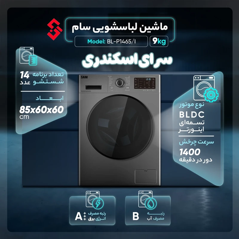 ماشین لباسشویی سام 9 کیلویی مدل BL-Q1465