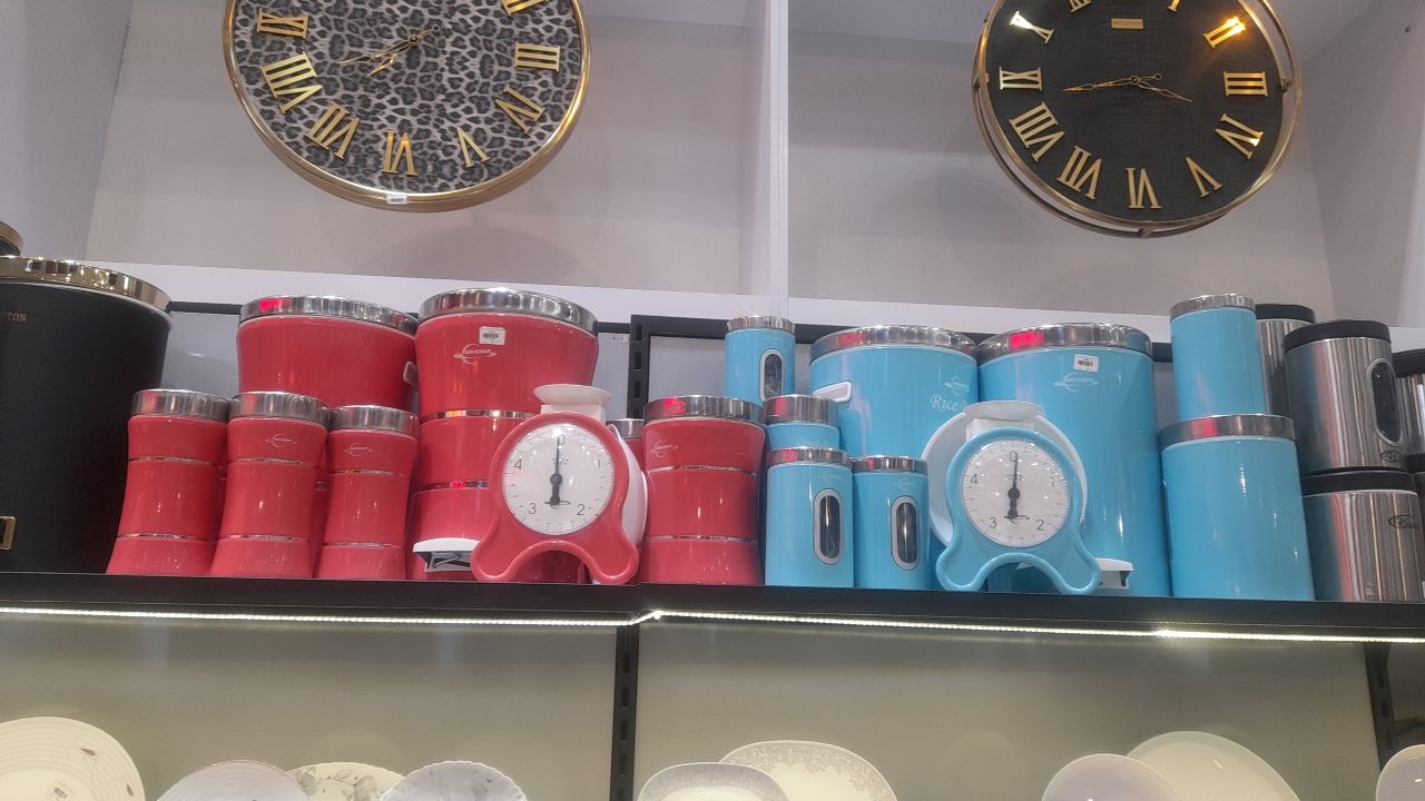 سرویس آشپزخانه اورانوس 14 پارچه کلاسیک صورتی درب استیل