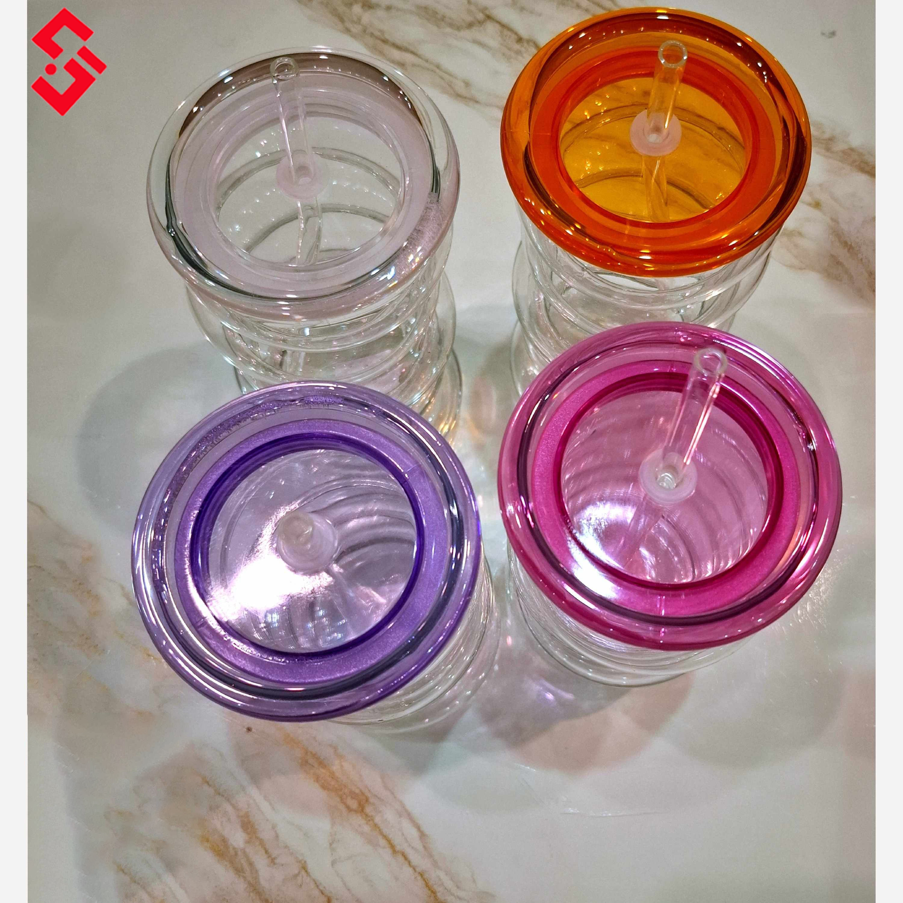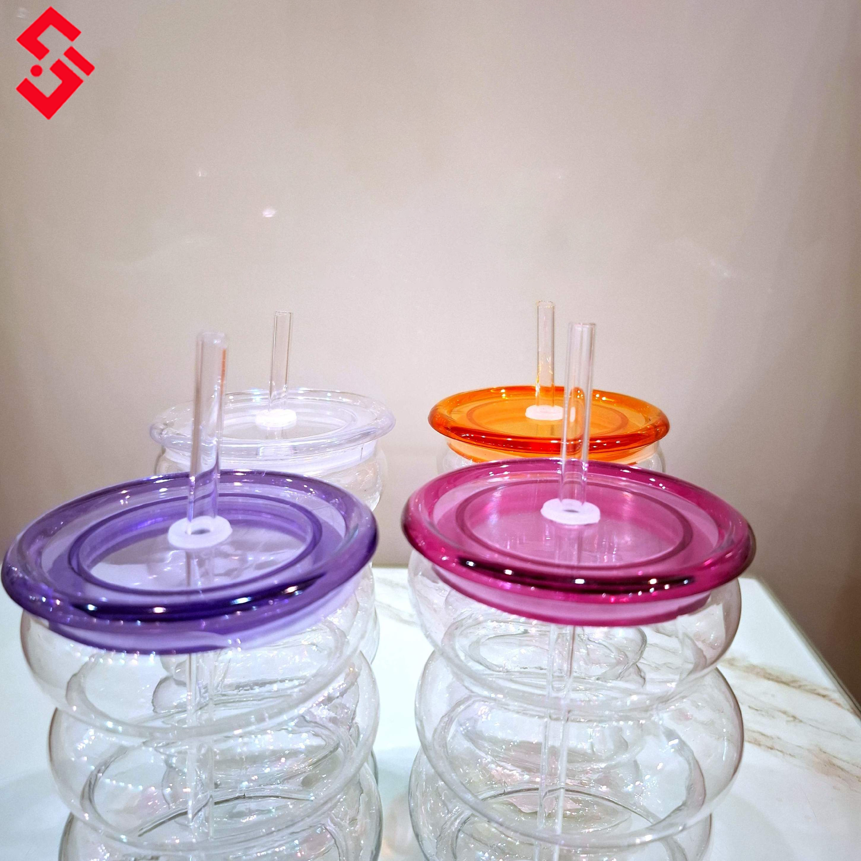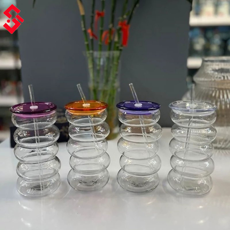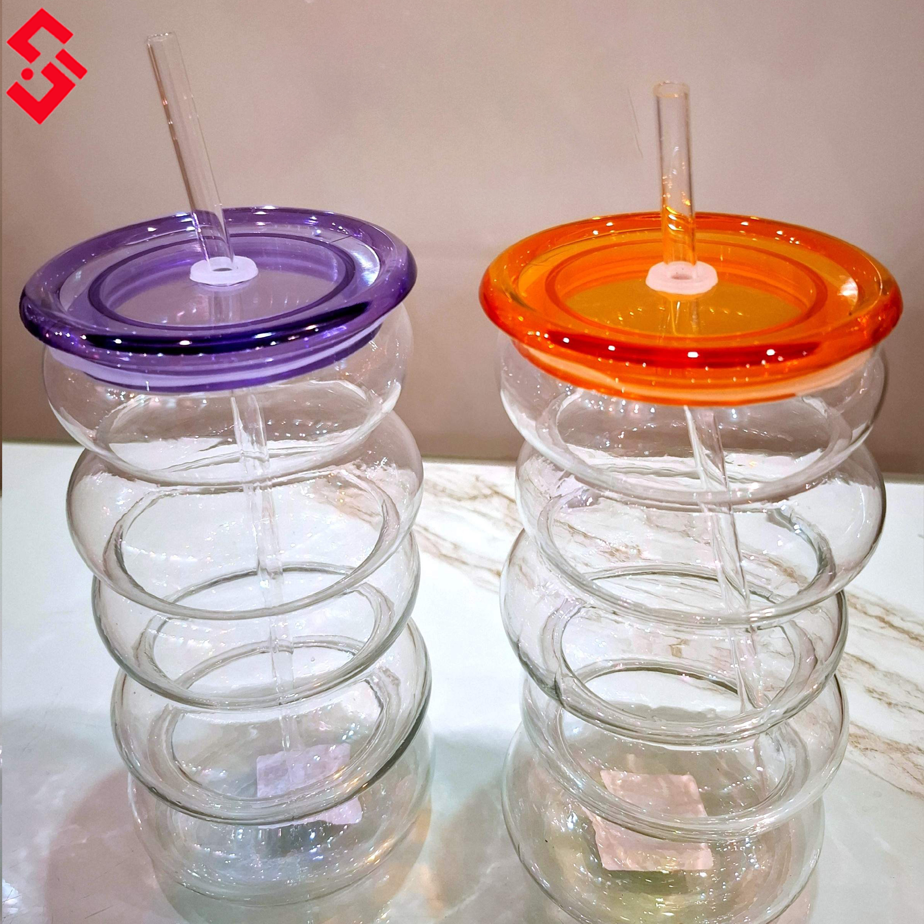 لیوان اسموتی نی دار شیشه ای مدل درب رنگی